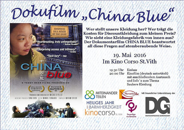 Dokufilm "China Blue" am 19. Mai 2016 im Kino Corso St.Vith