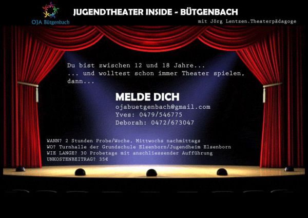 Die Offene Jugendarbeit Bütgenbach möchte Jugendlichen zwischen 12 und 18 Jahre die Möglichkeit geben, das Theaterschauspiel zu erlernen. Der Theaterpädagoge Jörg Lentzen leitet den Workshop.Wöchentlich wird zwei Stunden geprobt. Es gibt insgesamt 30 Probewochen und anschließend wird das Theaterstück aufgeführt.