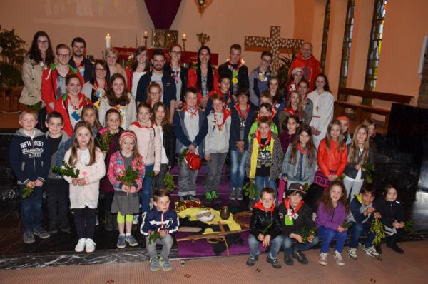 Liebe Mitchristen,Der Palmsonntag am 25. März ist für Kinder ein ganz besonderer Tag. Sie können Sträuße mit Palmzweigen mitbringen oder erhalte diese in der Kirche. Nach der Segnung der Zweige, die im Freien auf dem Schulhof in Weywertz oder am Eingang der Pfarrkirche in Bütgenbach und Nidrum stattfindet, beginnt die Prozession - auch die kann für die Kinder ein besonderes Erlebnis sein. Traditionell singen wir zur Prozession „Hosanna dem Sohne Davids. Hochgelobt sei, der da kommt im Namen des Herrn". Was liegt also näher, als die Kinder in den Prozessionsgesang am Palmsonntag auf besondere Weise einzubeziehen? Gerne singen wir auch das Lied „Jesus zieht in Jerusalem ein". Nach Hause zurückgekehrt, können die Kinder ihre gesegneten Palmzweige, die Segen und Schutz versprechen, an einem besonderen Ort anbringen.