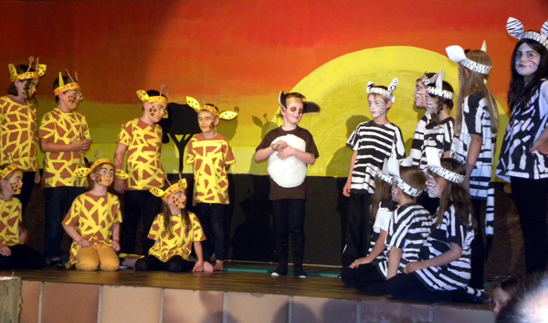 "Tuishi pamoja" – eine Geschichte über Vorurteile, Freundschaft und Toleranz mit afrikanischer Musik, zu der man sich einfach bewegen muss! Im Musical wird die Geschichte einer Freundschaft vorgestellt: Raffi, ein Giraffenjunges, würde so gerne mit Zea, einem Zebrakind, spielen.Leider darf es das aber nicht tun, denn seine Herde verbietet ihm den Kontakt zu den Zebras. In der Savanne ist es nun mal so, dass Giraffen nicht mit Zebras reden und umgekehrt. Schliesslich finden die Giraffen diese gestreiften Tiere dumm. Und auch die Zebras halten nichts von den langhälsigen, gepunkteten Tieren. Als Raffi und Zea einmal durch die Löwen in Gefahr geraten, merken sie aber, dass sie zu zweit stärker sind als alleine. Und so schliessen sie Freundschaft. Wie aber sollten sie das nun ihren Herden beibringen? Werden diese jemals wieder mit ihnen reden? Dürfen sie noch Freunde bleiben, wenn sie zurück zu ihren Eltern gehen?