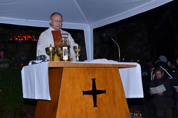 In diesem Jahr nahmen etwa 250 Christen aus dem deutsch-belgischen Grenzgebiet am Morgen des 1. Mai - um sechs Uhr in der Frühe - an der festlichen Eucharistie teil. Die Statue im Felsen war erhellt vom Schein der ewigen Lichter, einige Menschen zündeten noch eine Kerze an. Die Stadt Monschau hatte wieder ein großes überdachtes Podest vor der beeindruckenden Mariengrotte errichtet.