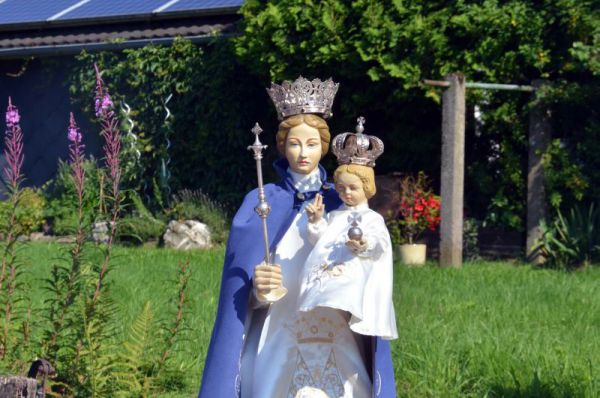 Die Firmlinge Jg. 2003, welche die Mutter-Gottes-Statue bei der Marienprozession am 15. August tragen, treffen sich um 8.45 Uhr vor der Kirche Weywertz.