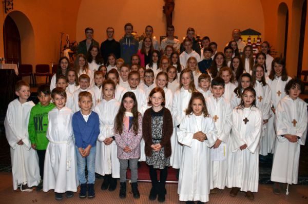 Im Gottesdienst gibt es viele Akteure: Priester, Küster(in), Organist, Lektor(in), Ministranten ... Und jeder einzelne spielt eine Hauptrolle im Gottesdienst, denn es geht um jeden Einzelnen. Damit bin ich selbst der Ausgangspunkt für jeden Gottesdienst und feiere ihn mit vielen anderen. Ministranten stehen stellvertretend für die Christengemeinde am Altar. Sie melden sich nach ihrer Erstkommunion, um in den Altardienst einzutreten und nach einem Jahr „Probezeit“ legen sie ihr Ministrantenversprechen ab, erhalten das Ministrantenkreuz und werden in die Ministrantengruppe aufgenommen. Kommenden Samstag (24.11.), wie jeden Christkönigssamstag, ist es wieder soweit: wir danken den 16 Kindern, die sich in den Dienst am Altar berufen lassen. Herzlichen Dank allen, welche die Kinder vorbereitet und bis hierhin begleitet haben.