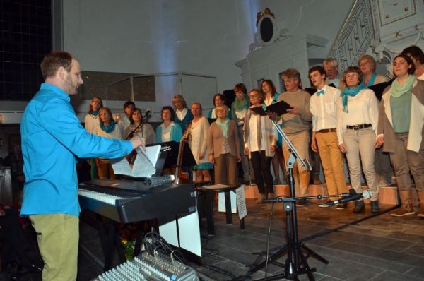 Dies ist, wie deutlich zu spüren war, auf den Chor übergesprungen, der mit Lockerheit und Musikalität eine bunte Folge von spirituellen wie auch weltlichen Stücken (Letztere überwiegend aus der Popszene) zu Gehör brachte.